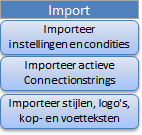 Kopieert alle instellingen op het instellingenblad, alle condities op het voorblad en het volledige conditiesblad vanuit de oude versie.Dit is mogelijk vanaf versie 3.19Kopieert de actieve ConnectionStrings vanuit de oude versie.Dit is mogelijk vanaf versie 3.19Kopieert de stijlen en logo's vanuit de oude versie.Dit is mogelijk vanaf versie 3.19Controleer tenslotte of een actieve connectie met Exact is op te stellen.